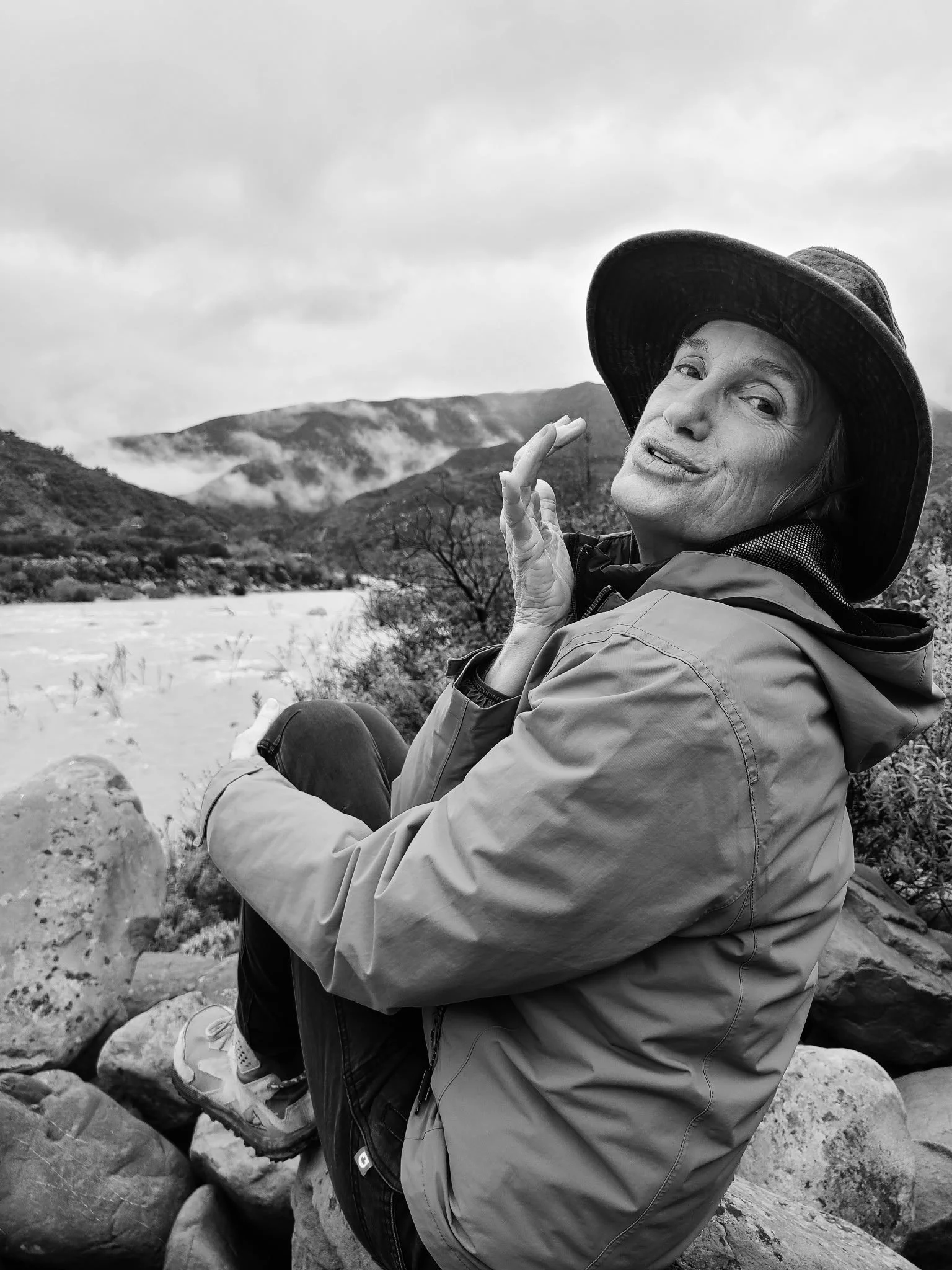 Calla is one of the tall gray-blondes of the Central Coast. Try to spot her. She camouflages in her faded jeans, loose-fitting tops, and canvas sunhats. Always sporting a smile, Calla dirt bikes in the hills of Santa Barbara with a helmet on. But it’s when she puts on her reading glasses that she does her most powerful work.